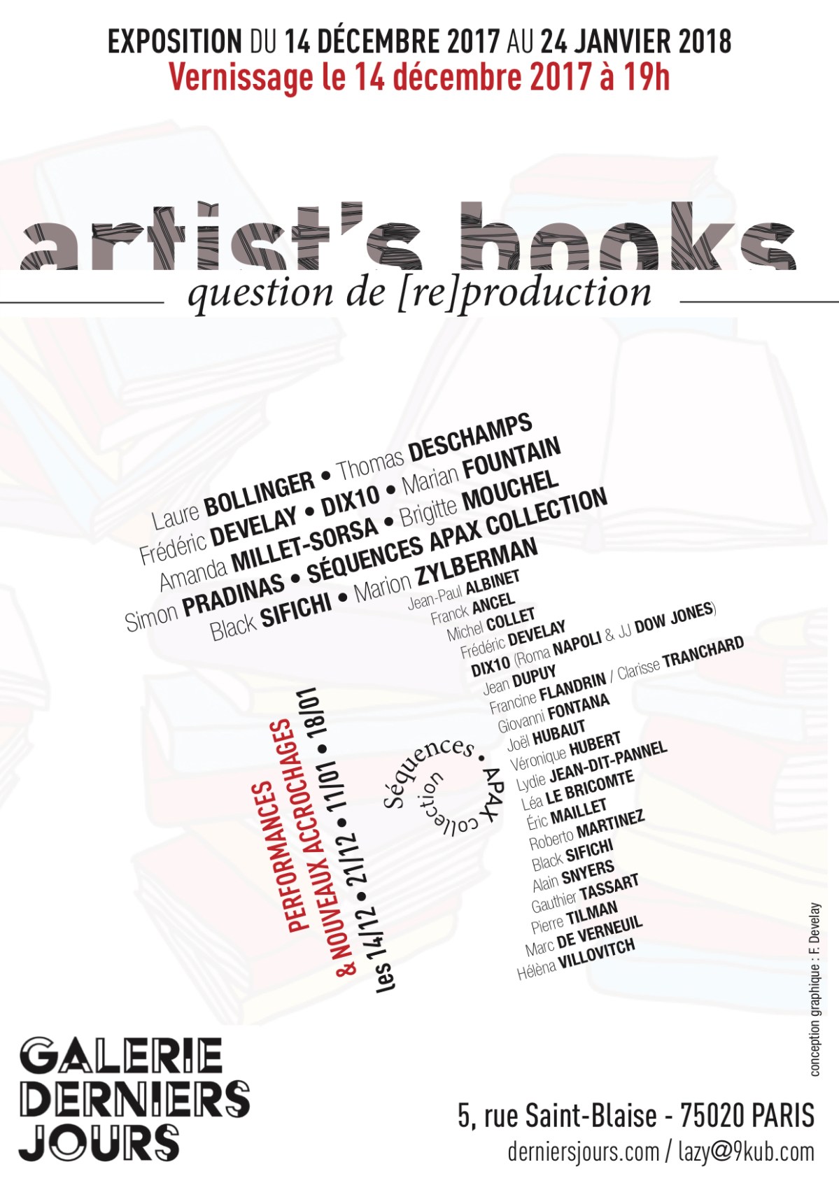 Les Séquences Apax collection (4 séries de 5 oeuvres) seront renouvelées en galerie au cours de performances et lectures par les artistes exposants.