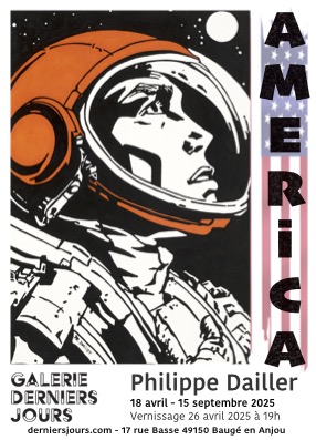 Après bien des sueurs froides auréolées de gloire et depuis sa retraite de Durtal, Philippe Dailler revisite ses héros d’enfance, détectives, justiciers, Indiens et blondes fatales en les couchant sérigraphiés sur toiles grand format.
