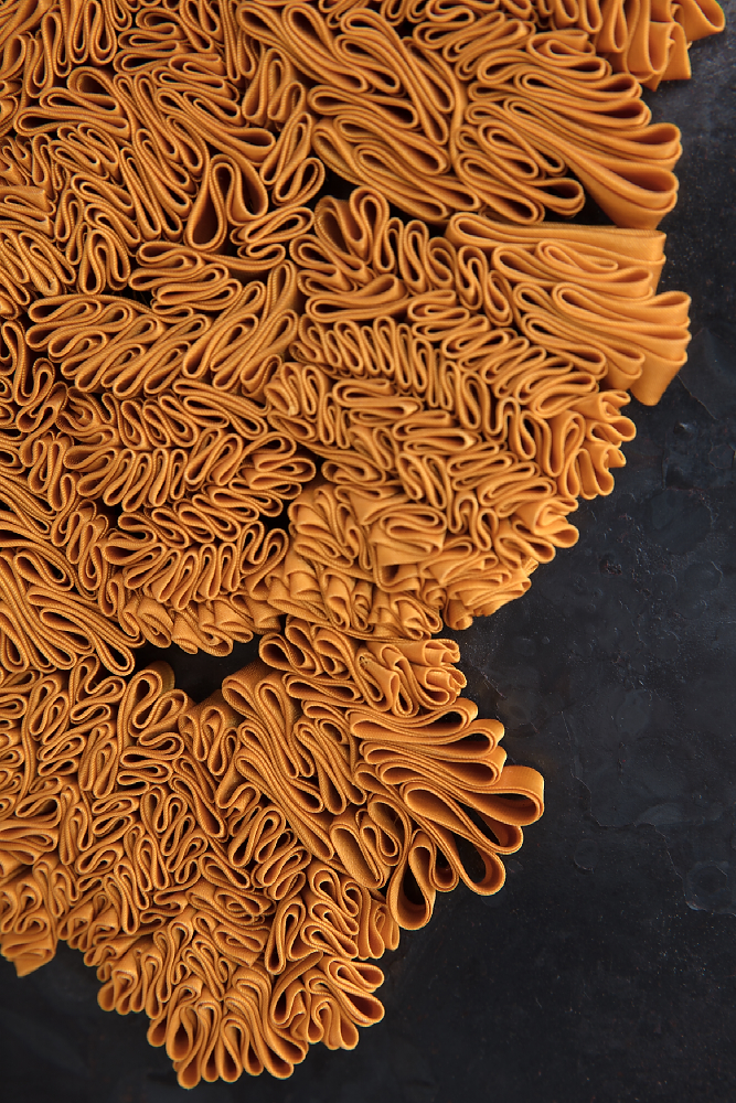 Je ne liais alors le textile qu’à l’univers de la mode. J’ai découvert l’univers du chapeau pour mettre en avant ce travail de matièrage auquel j’aspirais. J’ai créé la marque «Virginie Bécourt*», liant création textile et broderie aux bijoux de tête. Je souhaitais moderniser et revisiter le bibi comme accessoire quotidien. L’appropriation des techniques m’a permis de les détourner selon mes besoins et mes envies en tissant mon propre univers